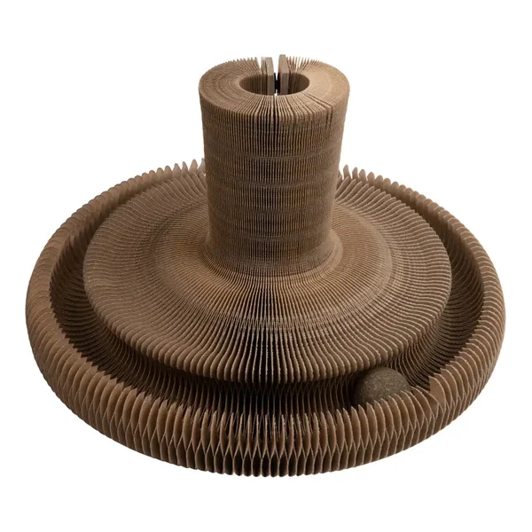 De MAZE is een 3-in-1 opvouwbare kartonnen kattenmand welke kan functioneren als lounge spot, krabmeubel en krabspeelgoed. Het balletje (bestaande uit catnip) bevordert de behendigheid van jouw kat doordat hij het balletje constant vooruit kan duwen en erachter aan moet gaan.
