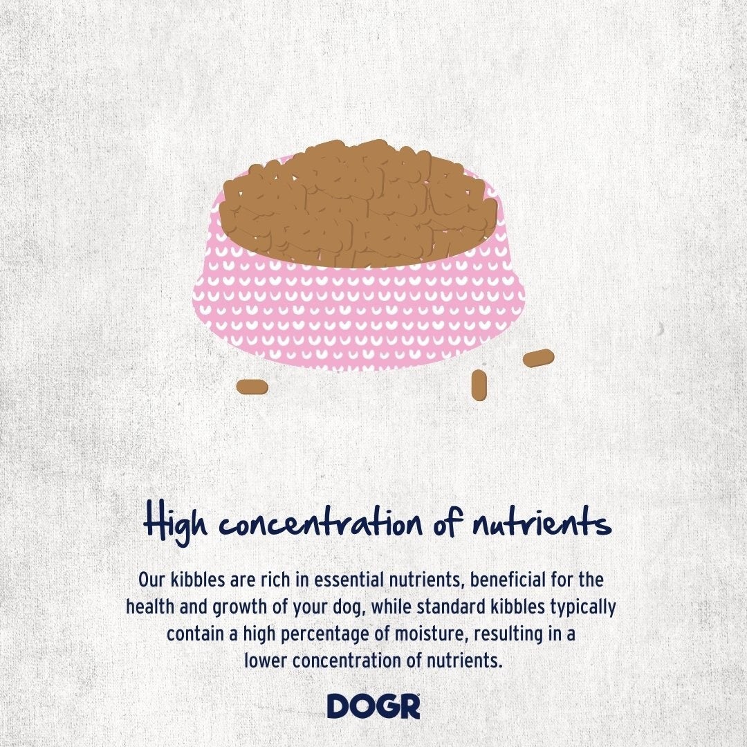 DOGR koudgeperste brokken zijn bereid op 70 graden Celsius, vallen makkelijk uiteen in de maag en zorgen voor goede verteerbaarheid en betere ontlasting.